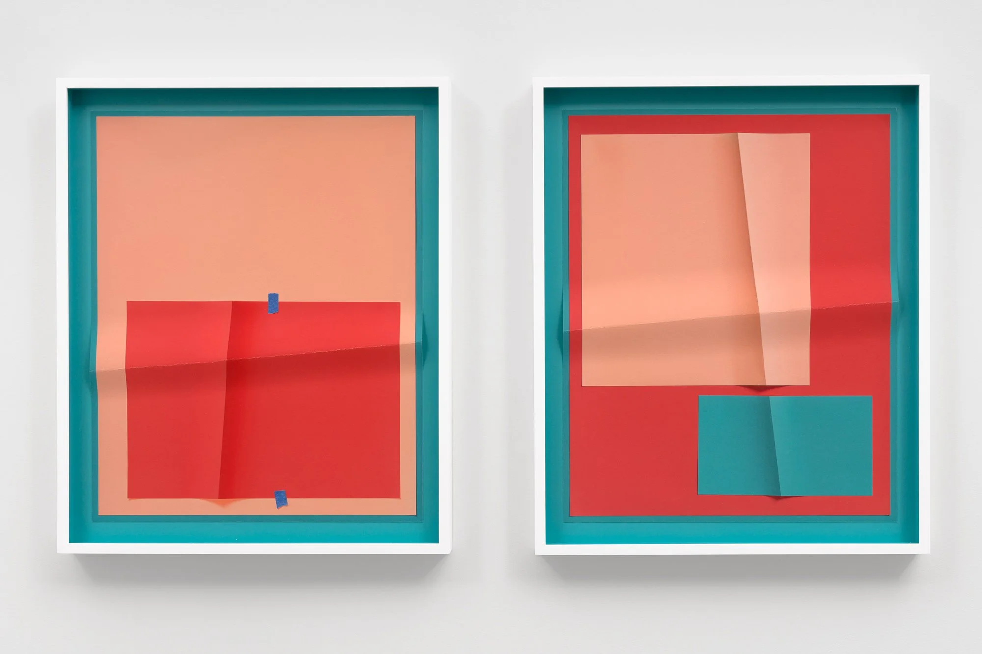 John Houck began the Accumulators series in 2013, after the Whitney Independent Study Program encouraged him to integrate his backgrounds in architecture and computer science into his work. The color combinations are generated by a program written by the artist. Once printed, Houck photographs, folds, and rephotographs the images several times, probing questions about memory and perception that continue to define his work today.