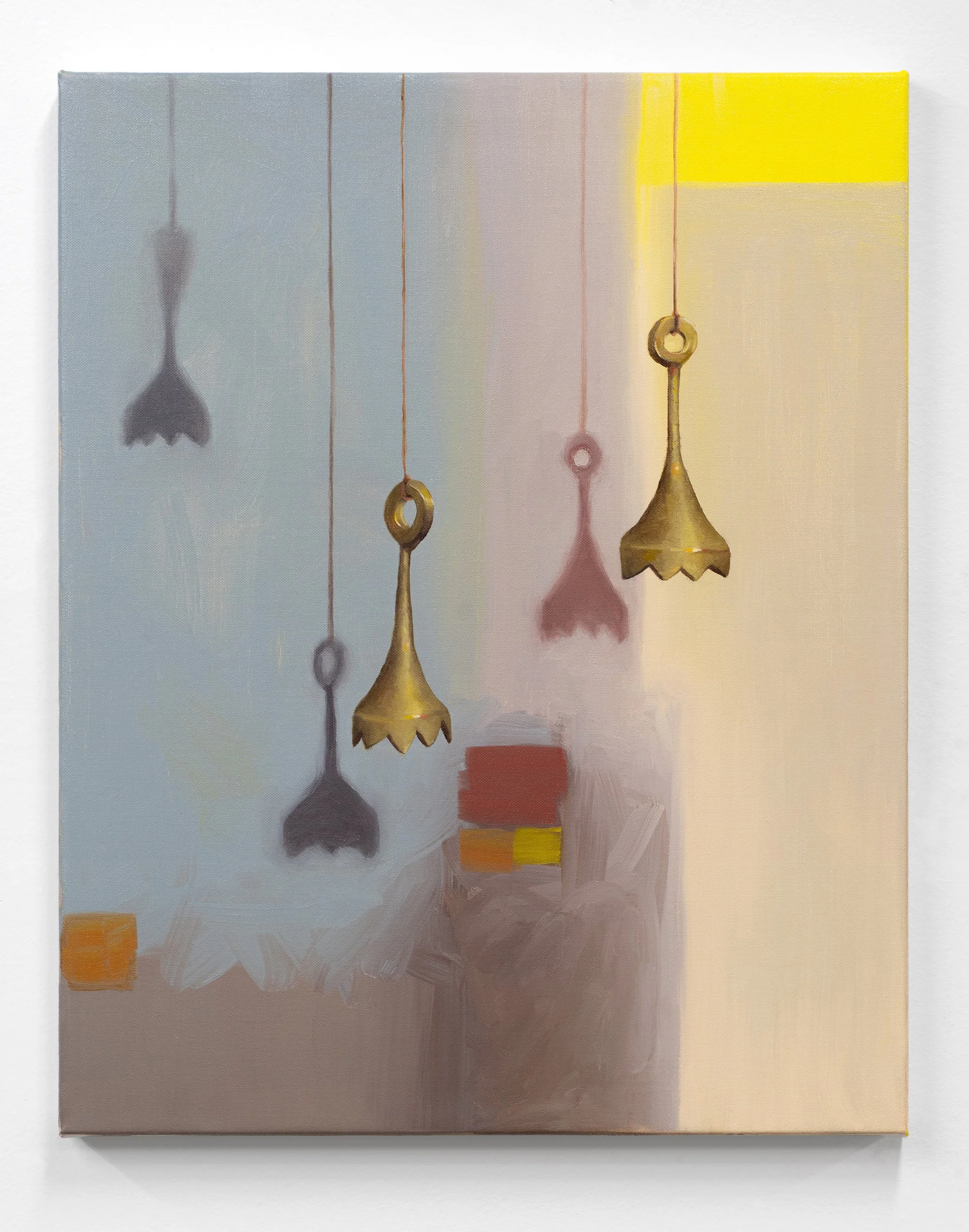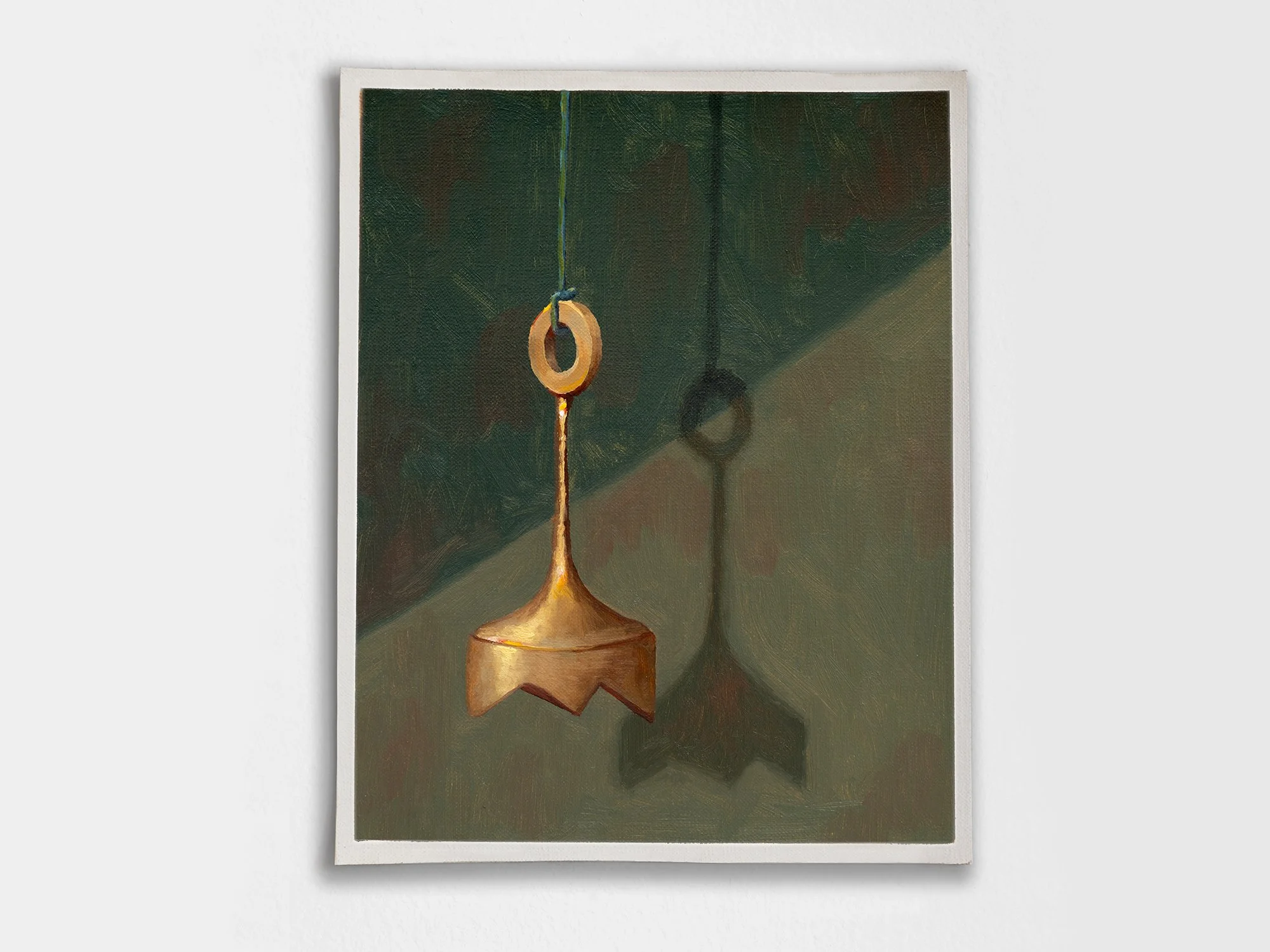 Houck explores the symbolic and psychoanalytical reading of shadows in a series of focused, small-scale color studies that render a single bell and its corresponding shadow against a monochromatic background. The studies serve as an important space to work out ideas for his larger-scale paintings, and simultaneously reference the use of folds and shadows in his early photographs.